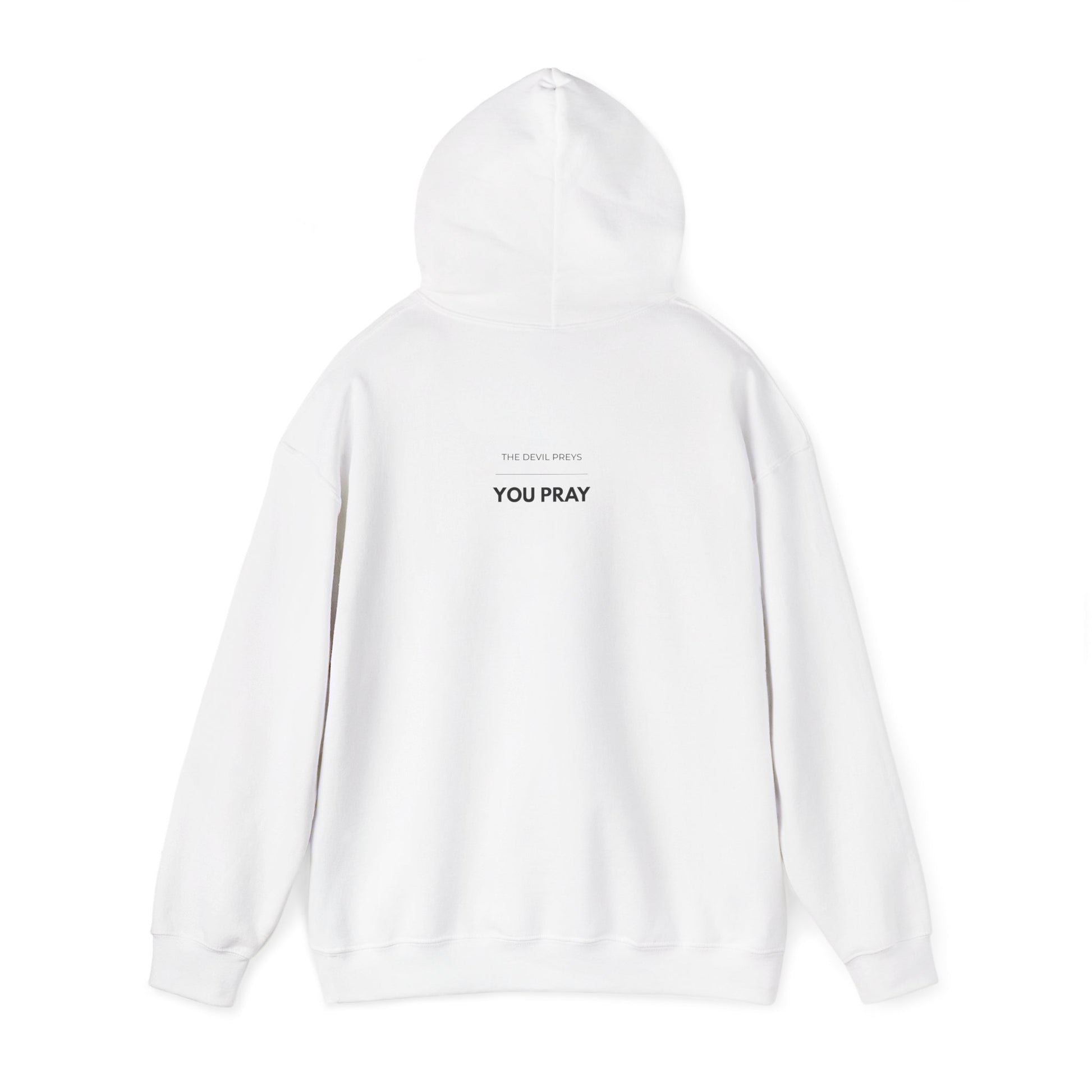 The The Devil Preys / You Pray Hoodie delivers a bold faith-based message through clean typography and intentional contrast. Designed to remind you — and others — where your strength comes from.